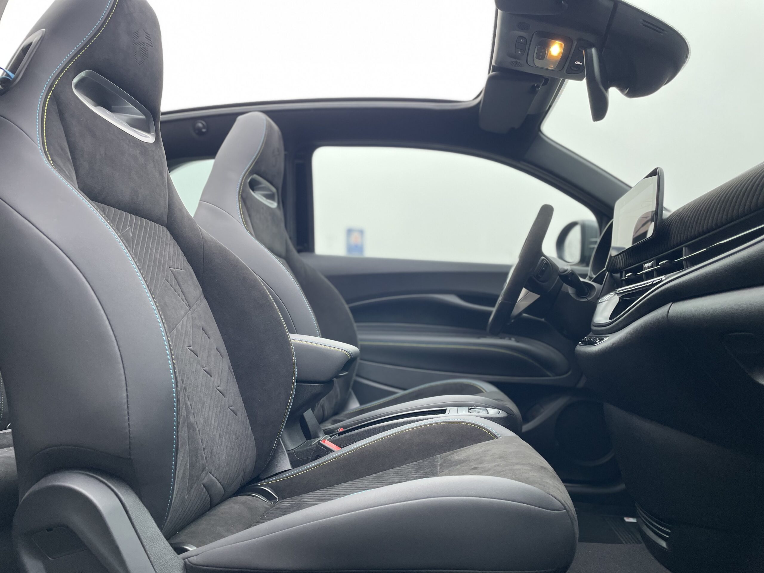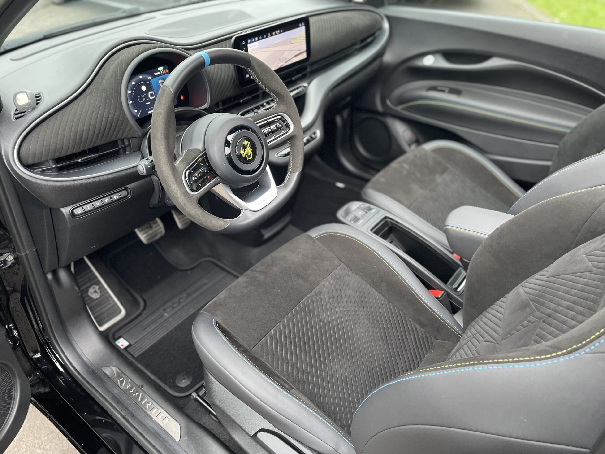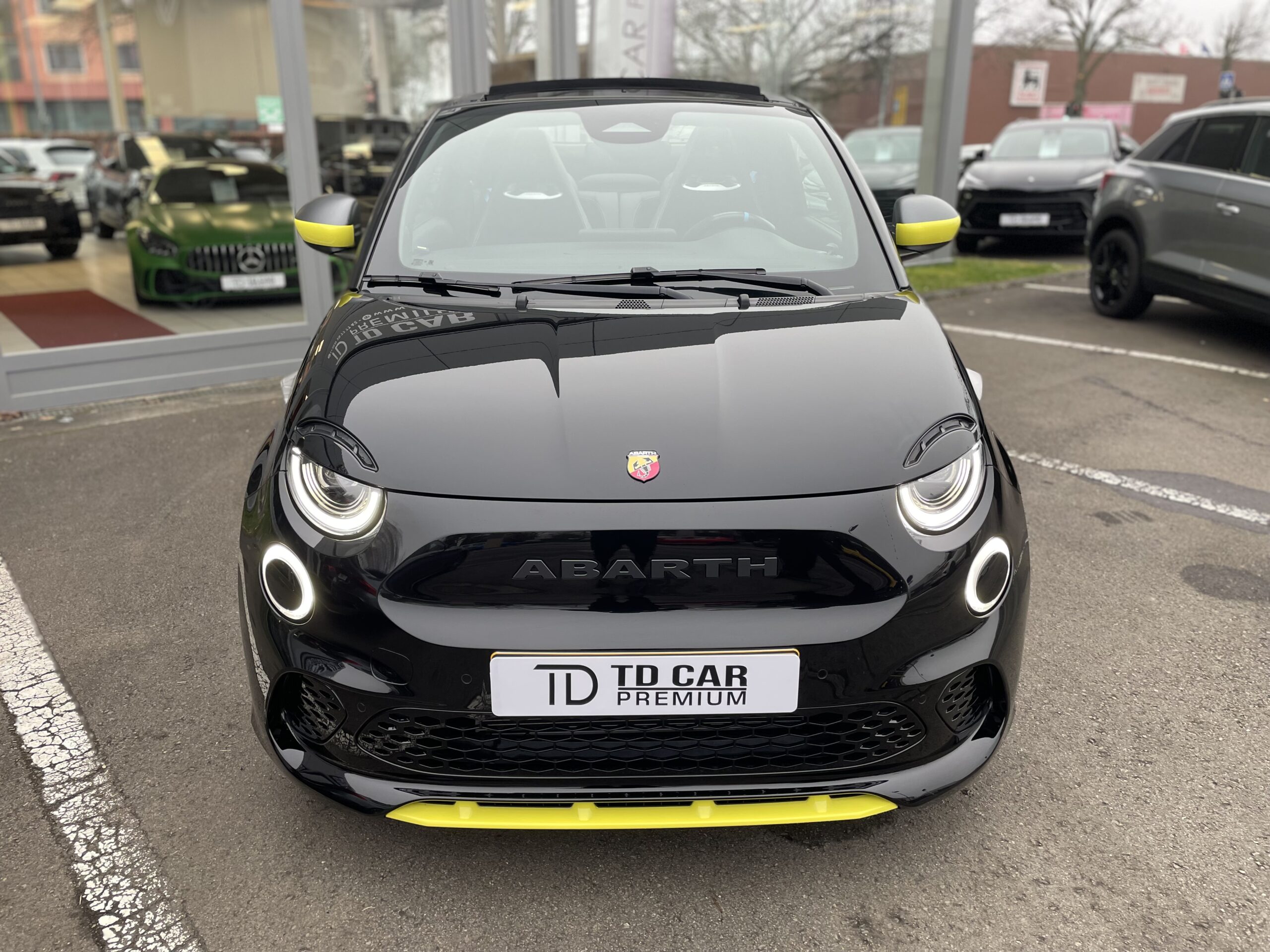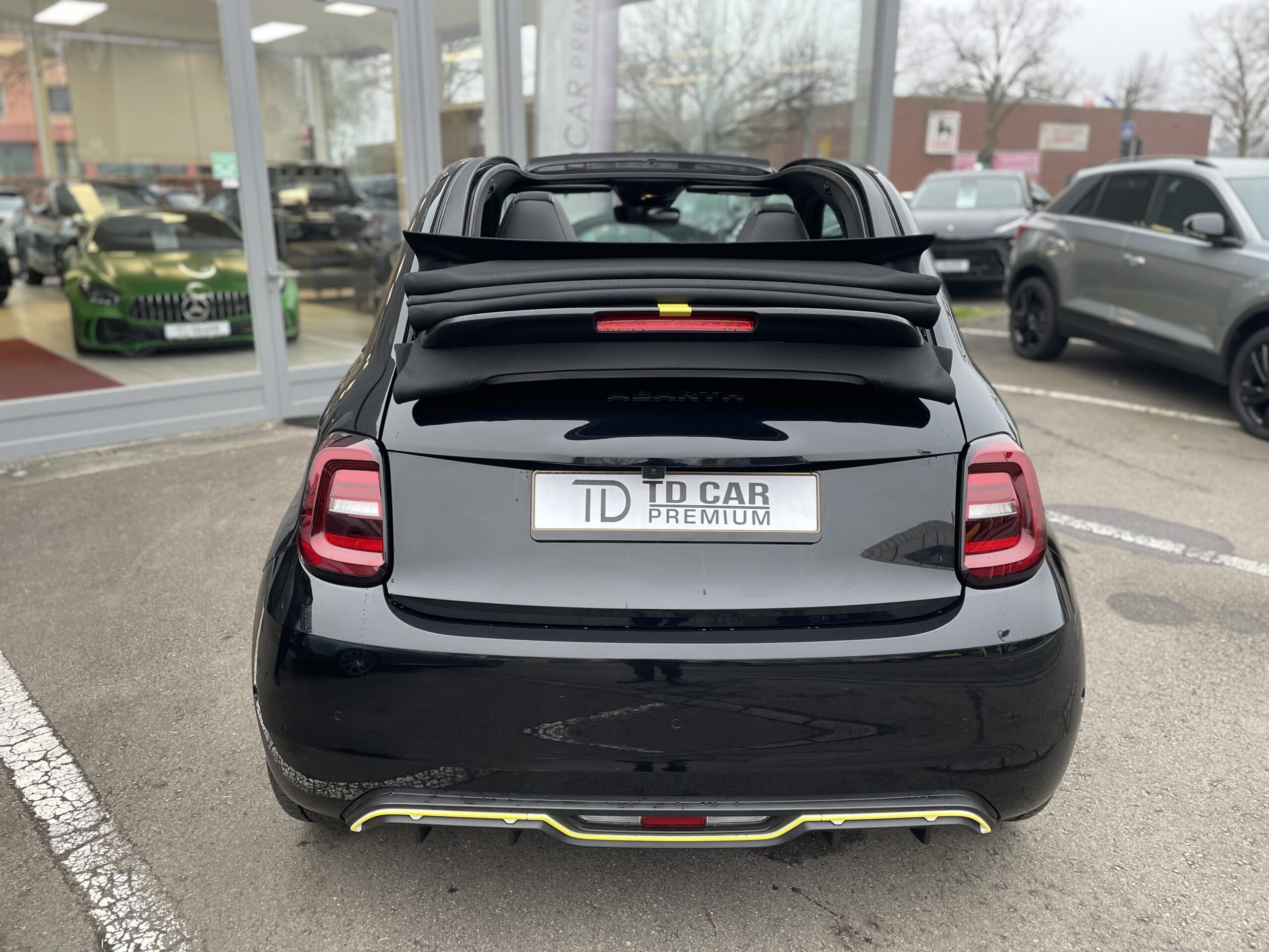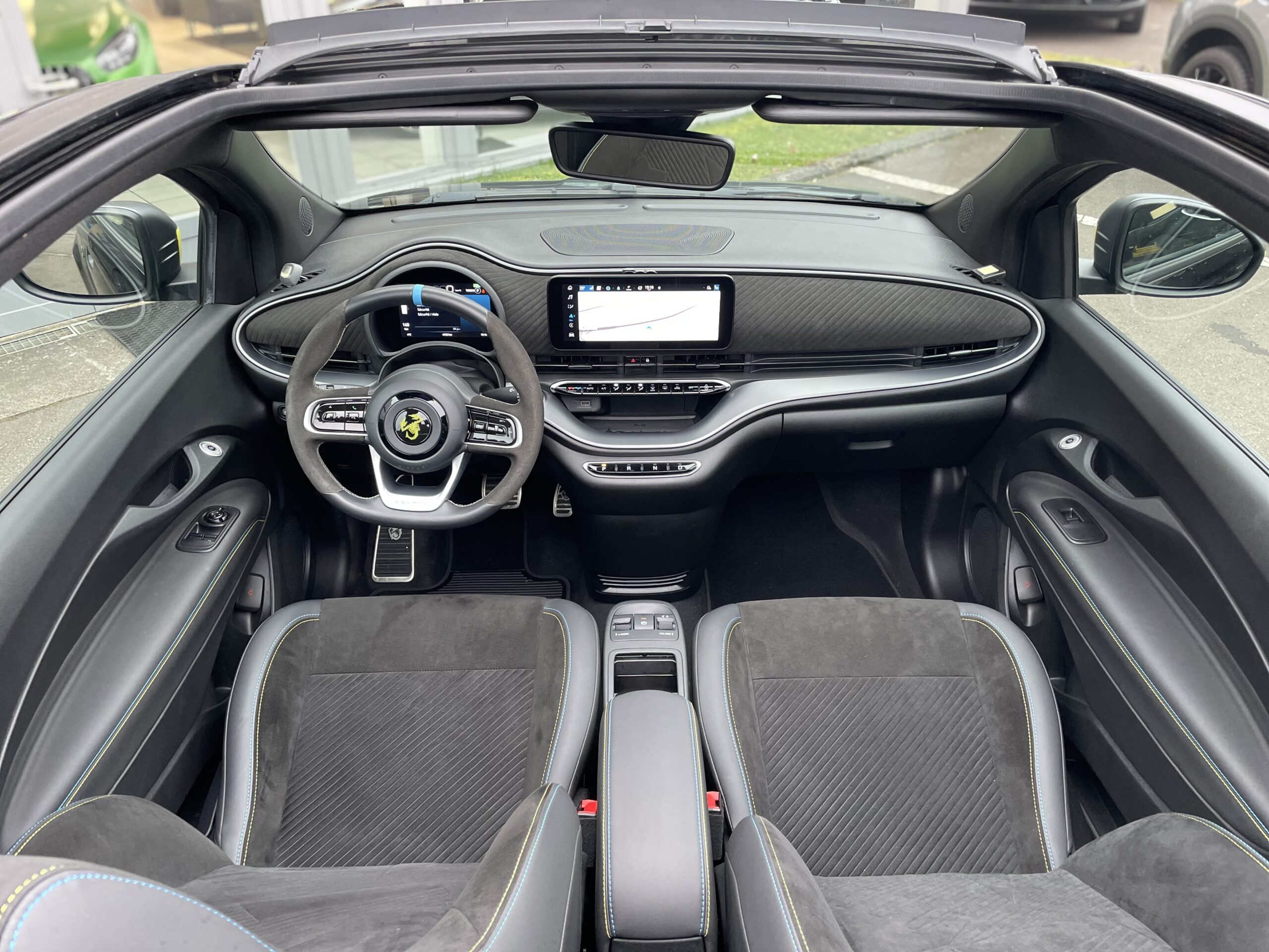 Audio – Télécommunications : – Système Uconnect 10,25″ avec navigation Conduite : – 3 modes de conduite disponibles Extérieur : – Aide au stationnement 360° – Caméra de recul – Capote électrique – Jantes alliage 18” gris titane diamentées – Projecteurs avant full LED “Infinity” – Radars de stationnement arrière – Système de commutation automatique feux de route/feux de croisement – Vitres arrière surteintées Intérieur : – Banquette arrière fractionnable 50/50 – Climatisation automatique – Console centrale avec accoudoir et rangement fermé – Ecran TFT 7″ couleur – Lève vitres avant électriques à impulsion – Pédalier sport – Rétroviseur intérieur électrochrome – Volant 3 branches Cuir / Alcantara Pack : – Chargeur de smartphone par induction – Frein à main électrique – Peinture Vert Acide – Rétroviseurs extérieurs chauffants – Seuils de portes chromés Sellerie : – Sellerie sport en cuir/Alcantara Sécurité : – 4 Airbags – Alerte de franchissement de ligne – Détecteur d’angle mort – Freinage d’urgence autonome – Kit anti-crevaison – Reconnaissance des panneaux de signalisation Autres équipements et informations : – Chargeur USB A & C tunnel central – Menus dédiés à la gestion de la performance – Ouverture sans clé côté conducteur – Sièges avant avec appuis-tête intégrés – Système d’avertissement acoustique d’approche du véhicule (AVAS)